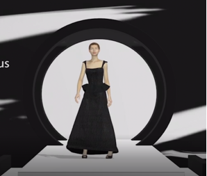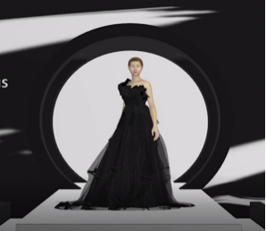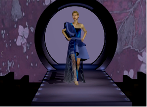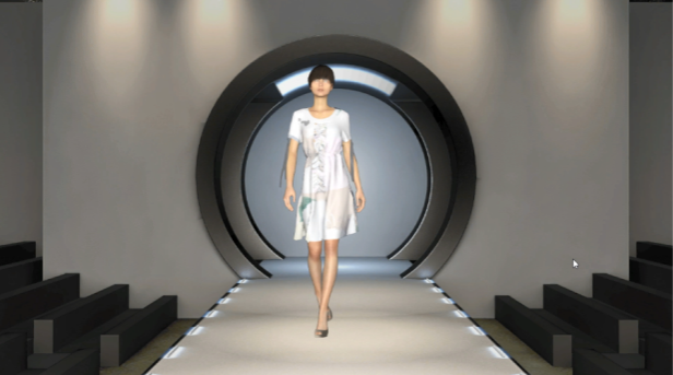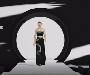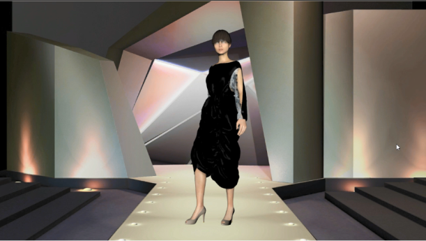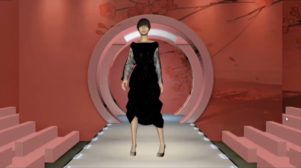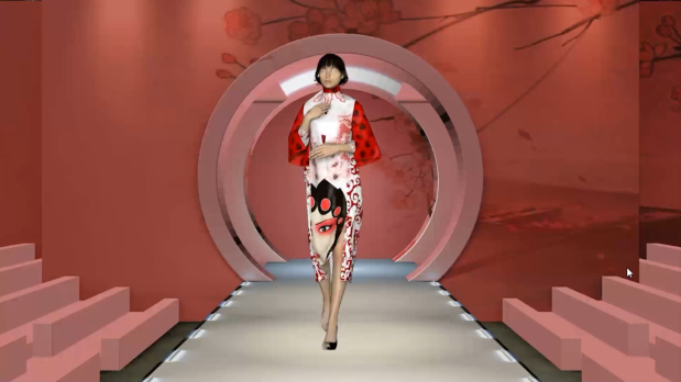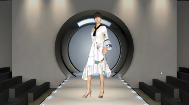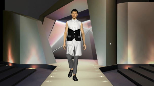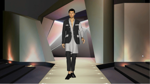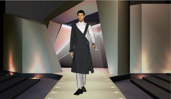 在最终成果呈现这一步,采用浸入式虚拟仿真时装秀的形式,让学生设计的三维虚拟仿真服装作品,能通过虚拟模特T台走秀的形式,直观地呈现在设计者和观众的面前,改变通过样衣设计与缝制、真实模特穿衣走秀的传统呈现方式,让学生能够身临其境地检验和展示自己的设计劳动成果,大大增加了本课程的乐趣,使学生获得极大的成就感和自豪感(见图10)。